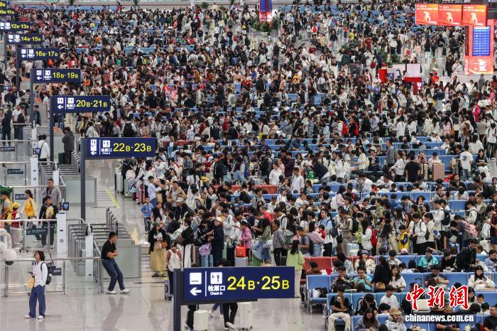 10月1日,搭客正在贵阳北站候车年夜厅列队检票。当日是2025年邦庆中春假日第1天,贵阳北站启队伍车506趟,改革启站往后单日启队伍车趟数记载,迎去客淌顶峰。中新社记者 瞿宏伦 摄