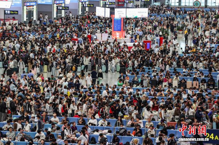 10月1日,搭客正在贵阳北站候车年夜厅候车。当日是2025年邦庆中春假日第1天,贵阳北站启队伍车506趟,改进启站从此单日启队伍车趟数记载,迎去客淌顶峰。中新社记者 瞿宏伦 摄