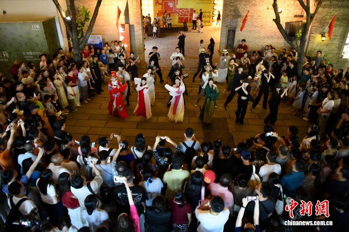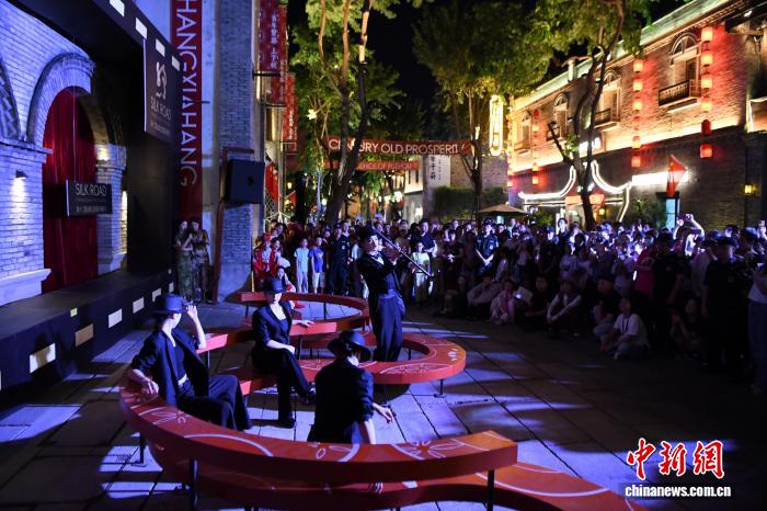 9月30日早,祸修祸州,公众围不雅陶醉式演出。中新社记者 王东亮 摄